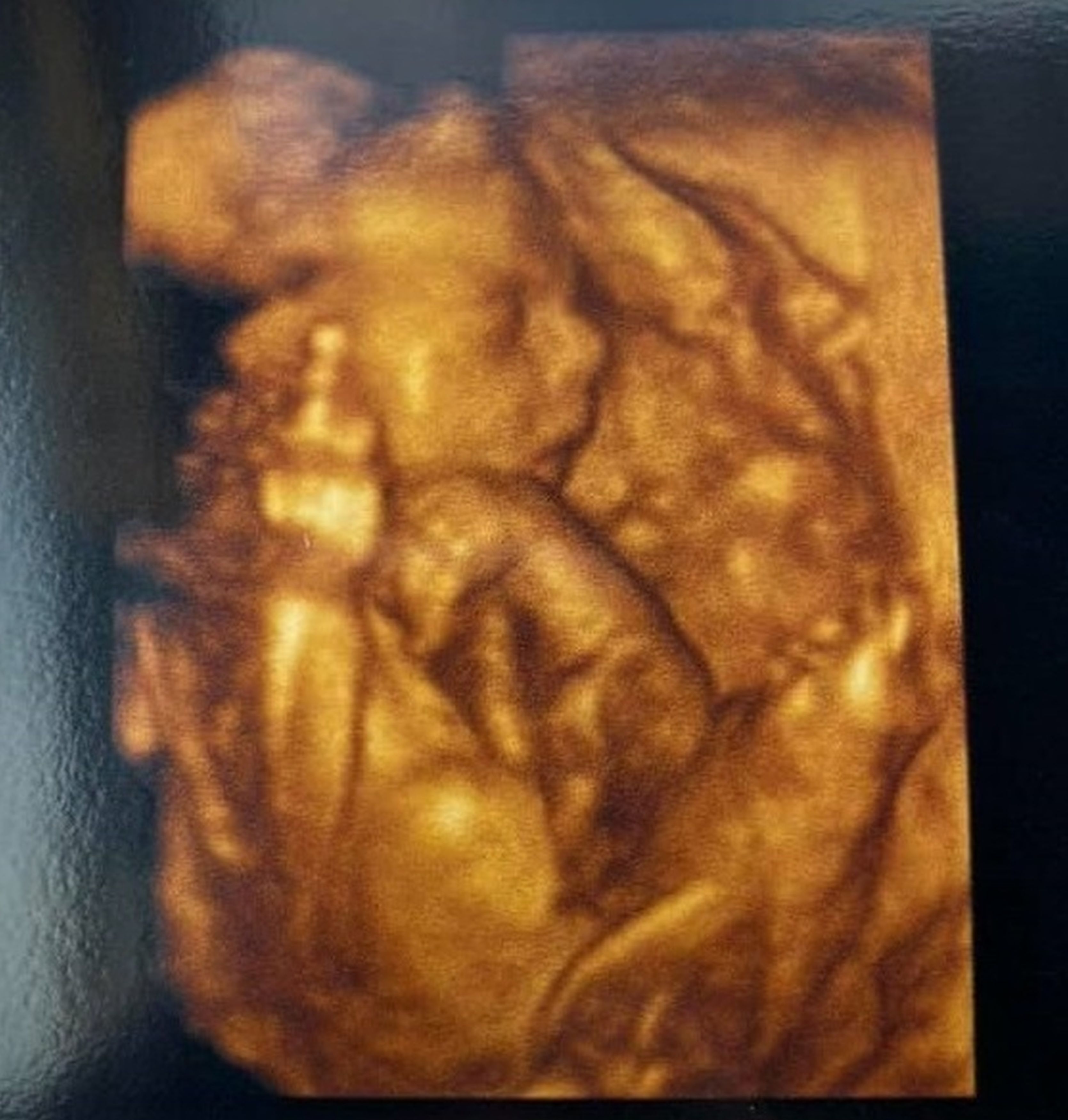 ▼Chelsea說:「我們一邊聊天一邊照超音波,突然看到寶寶豎中指的畫面。大家都愣了一下,然後忍不住驚呼出聲。這一幕非常有趣,直到離開醫院,回到車上,我們還在發笑。還沒有出生的寶寶怎麼會豎起中指呢?她似乎在說『再見,2020年』!」