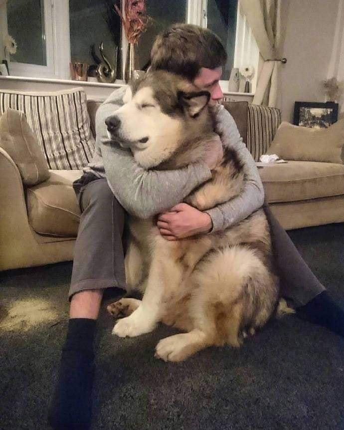 ▼狗狗體型這麼大,內心卻住著一個小寶寶,還愛求抱抱,這份量主人快承受不住啦。