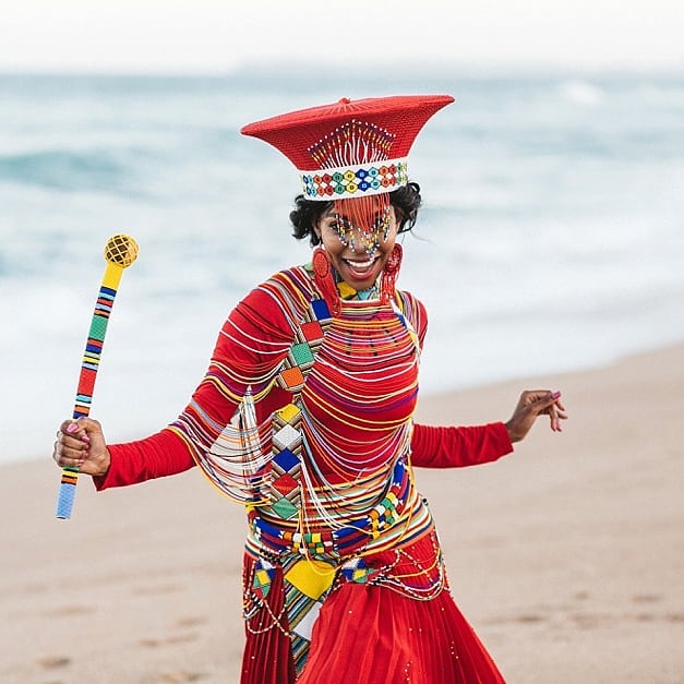 ▼南非:傳統婚禮上,新娘戴著名為「inkehli」的帽子,上面有彩色的串珠,非常漂亮。