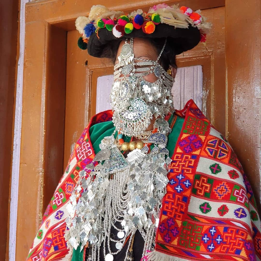 ▼喀什米爾地區:這裡的新娘在結婚當天會戴特別的頭飾,頭飾由銀鍊、大項鍊和小型佛教盒子組成。