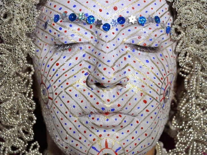 ▼戈拉地區:新娘臉上會畫特別的圖騰,驅散厄運,迎來好運。