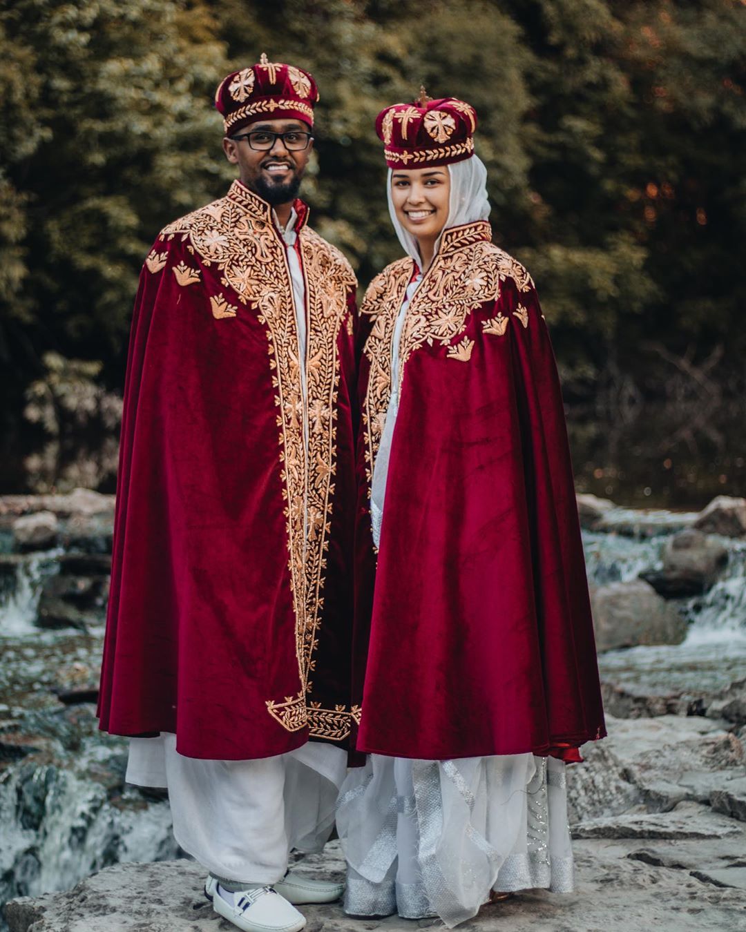 ▼埃塞俄比亞:傳統婚禮上,新人會穿深色的天鵝絨長袍,還會戴皇冠。