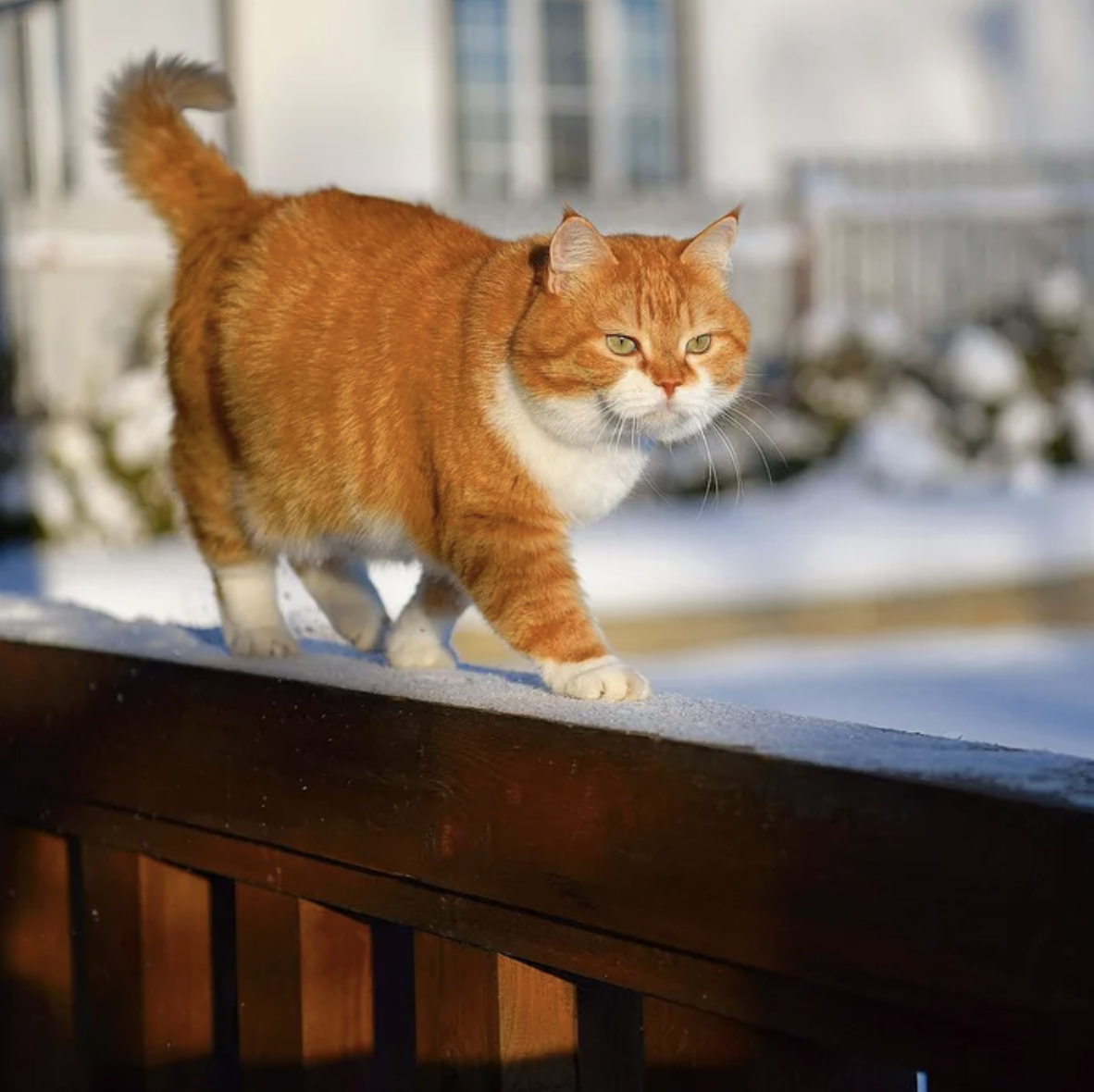 ▼Ginger是一隻胖橘,但行動很敏捷。牠閒來無事就會到雪地裡玩耍、散步。牠在雪地裡奔馳的模樣非常霸氣,不過搭配牠圓圓的身材,總是能讓人聯想到萌萌的玩偶。