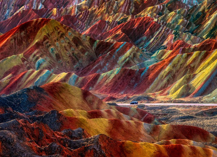 ▼這彩色的山就像童話故事中一般。