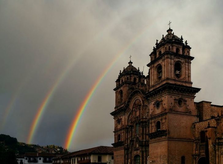 ▼秘魯大教堂被3道彩虹照亮了。