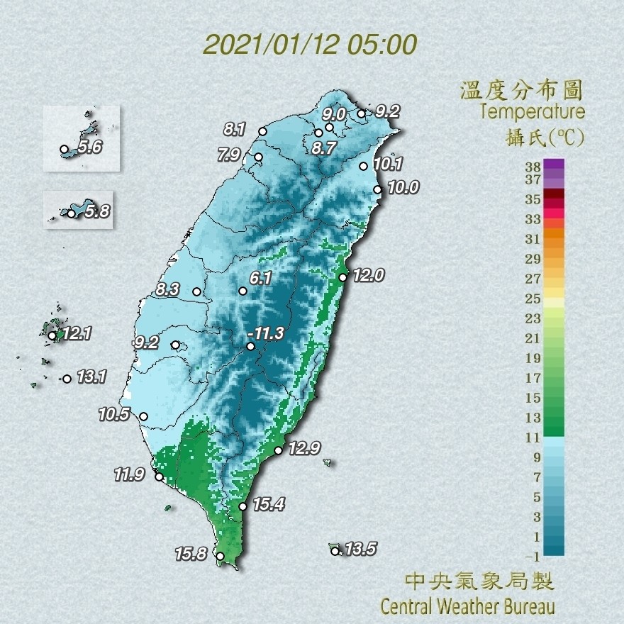 2021年01月12日冬天有寒流並不奇怪,但短時間內寒流一波又一波到來,就非常誇張了~中央氣象局表示,入冬第三波寒流已經達標,今日(12日)清晨全台最低溫出現在苗栗縣銅鑼,只有6.4度。今晚到週三(13日)清晨是這波寒流最低溫的時間,各地區平地的最低氣溫在4到6度之間,一定要注意保暖。