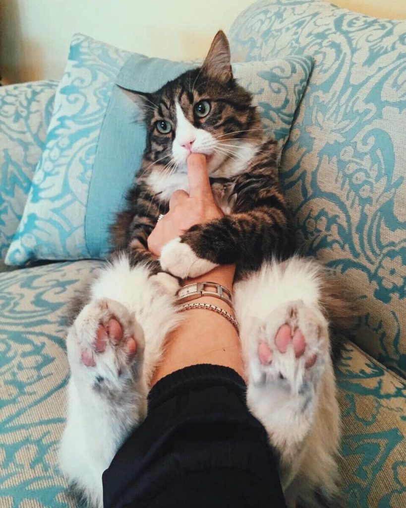 ▼IG網友@fataliciousromeo家的貓咪名叫Romeo,牠每次想要尋求安全感和依賴感的時候,就會將奴才的手指當做奶嘴吸,雖然現在牠早已長成大貓咪了,還是經常鎖定奴才的手指,然後一臉癡迷的大力吮吸。