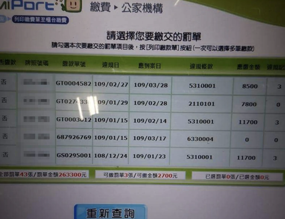 ▼有網友爆料說,五寶爸沒有自己在新聞上說的那麼顧家。他花錢改裝機車,還積欠20多萬元罰單,之前工作也經常曠職,會在西屯一家機車行待到半夜才回家。從曝光的照片來看,五寶爸的機車大燈、前避震器疑似都改裝過,他還卸下機車的引擎。而他在便利超商查詢罰單,可以看到他的機車總計欠繳43張罰單、共263300元,並有多筆闖紅燈、無照駕駛被開罰的紀錄。