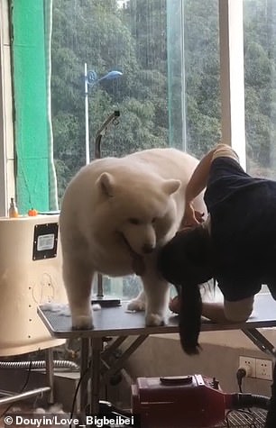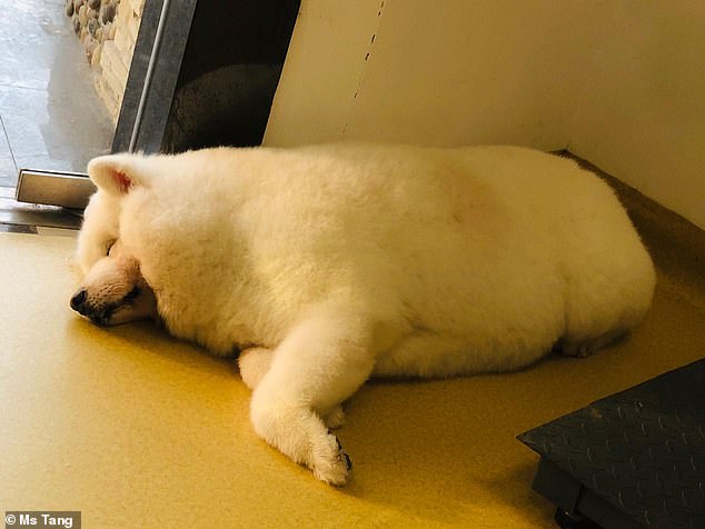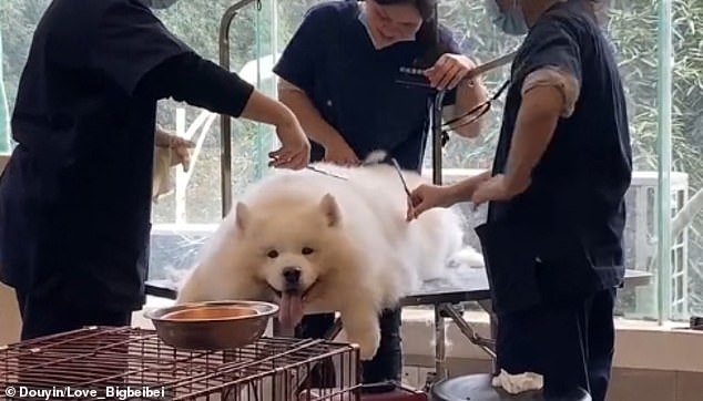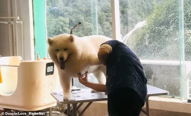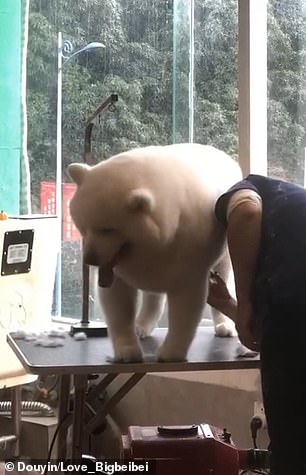 ▼剪毛後的貝貝變化超級大,寵物美容師給牠設計了一個圓潤的造型,再加上牠的毛毛比較厚實,剪完後牠看起來就像一隻北極熊。