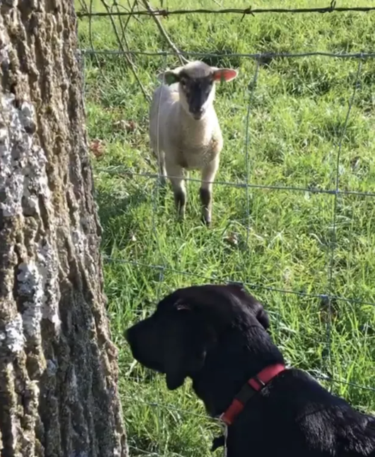 ▼狗狗第一次見到小羊,感覺很好奇。