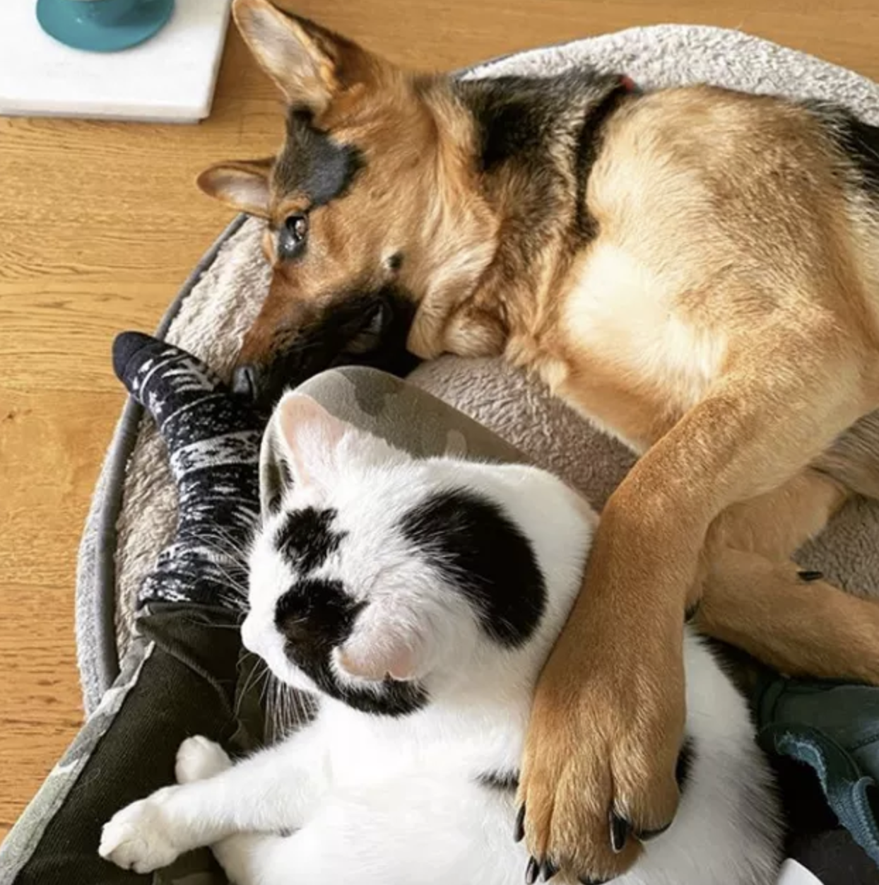 ▼狗狗和兔兔住在一起。