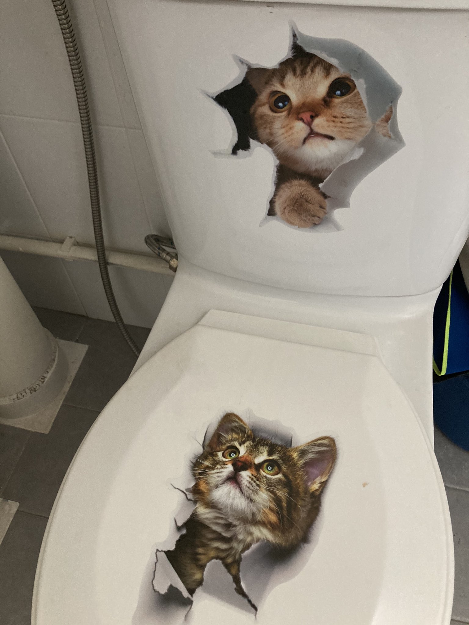 ▼在遭到主子誠實又無情的對待後,爸爸並沒有放棄,而是將對主子的愛轉移到了別處。原PO後來又發文表示,「我爸現在越來越誇張了…」,竟然連馬桶蓋和水箱上都貼滿了貓咪貼紙,爸爸的愛真的太深沉了~