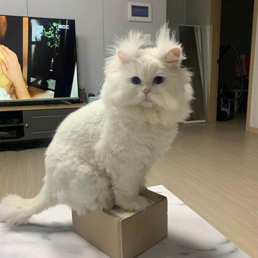 2021年01月23日長相這麼霸氣的貓咪真少見!韓國有一隻叫Malsook的波斯貓,牠毛髮茂盛,非常蓬鬆,看起來亂糟糟的,有點潦草。尤其是Malsook耳朵後面那兩撮長毛,不管主人怎麼梳理,都頑強豎立,看起來就像蒲公英一樣,非常顯眼。