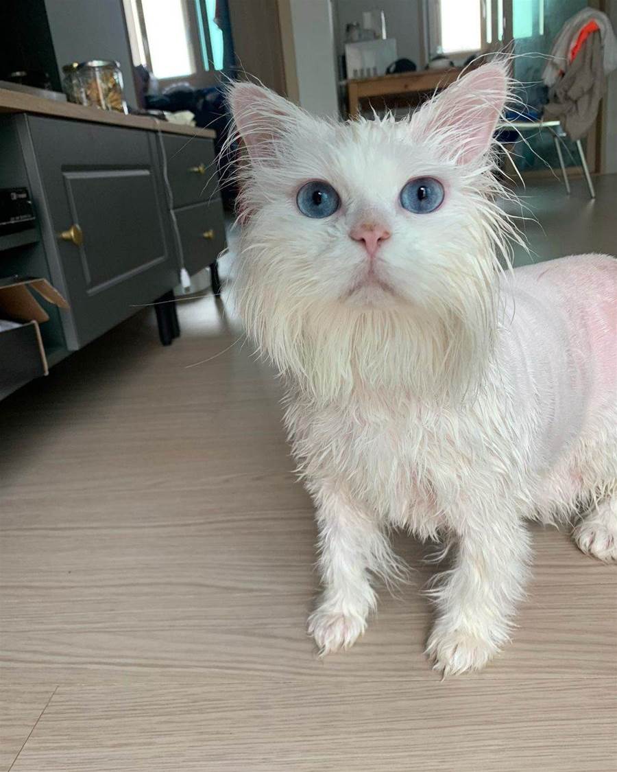 ▼Malsook只是毛髮蓬鬆,其實並不胖。牠洗澡後看起來就像瘦了好幾公斤,而且毛髮濕漉漉、很柔順,竟然顯得格外溫柔。