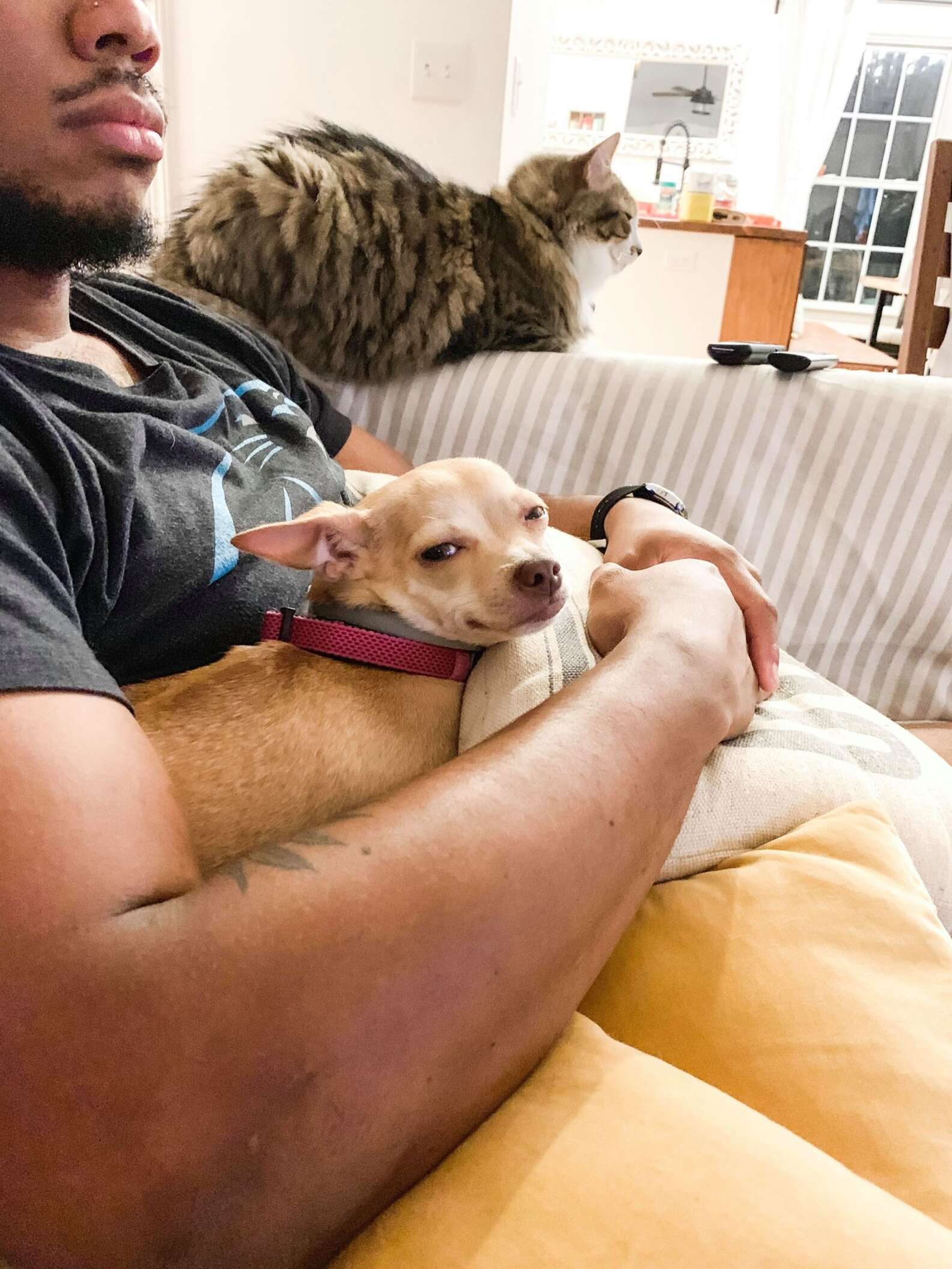 2021年01月24日嘴上說不要,身體卻很誠實!國外網友Sheridan Oliver Martin很想養吉娃娃,但老公Sinclair不同意,他表示自己討厭小狗,因為小狗很神經質。沒想到吉娃娃Pickles來到家裡後,老公的態度竟然大轉變,不僅主動照顧Pickles,還整天曬恩愛,讓Sheridan看得目瞪口呆。