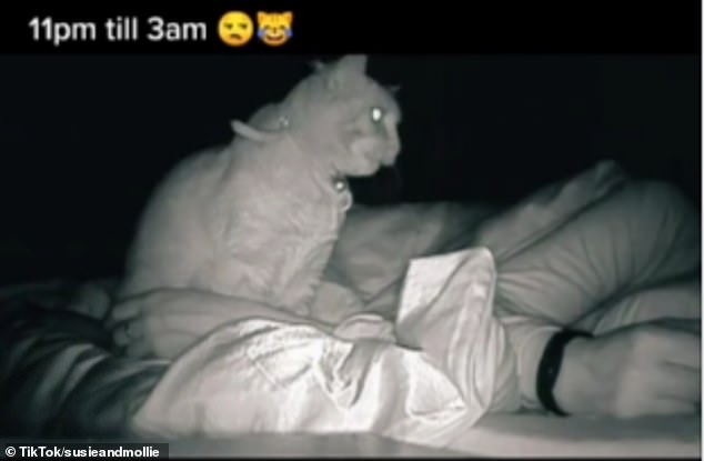 ▼從晚上11點到凌晨3點,Ginger又打又叫,一直沒停過。女子沒有被吵醒,但顯然睡得並不安穩:
