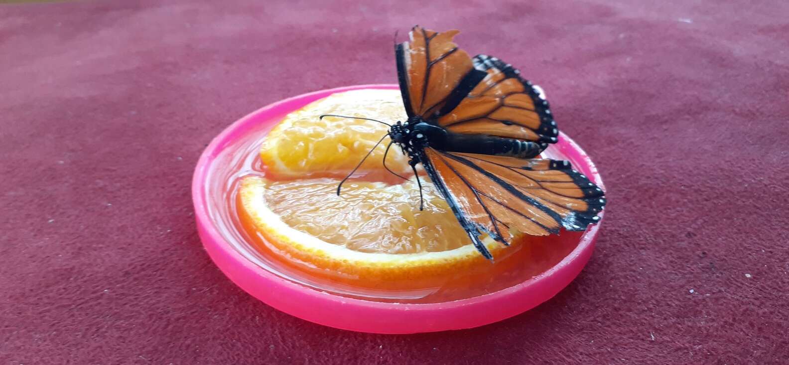 ▼來到溫暖的室內,蝴蝶很快恢復活力。Debbie給牠取名為Freddy,並給牠準備食物。Freddy每天都會在家裡飛來飛去,牠很喜歡家人的陪伴,會落在家人身上。Debbie說:「我早上起床看到牠拍打翅膀,就像看到狗狗在搖尾巴一樣。」