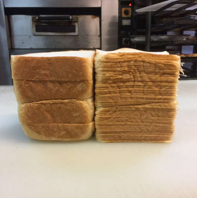 2021年01月24日真的是高手在人間呀!日本一位twitter用戶@J_buriburi利用吐司展現了自己的神奇刀工,他是一位麵包店店員,因為興趣,自己辦了一個「吐司薄切大賽」。