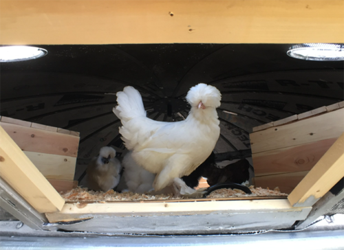 ▼幽浮雞舍完成後,Brett加上了底座墊高,防止野生動物跑進去。平時小雞們透過幽浮的艙門進出,謹慎又安全。