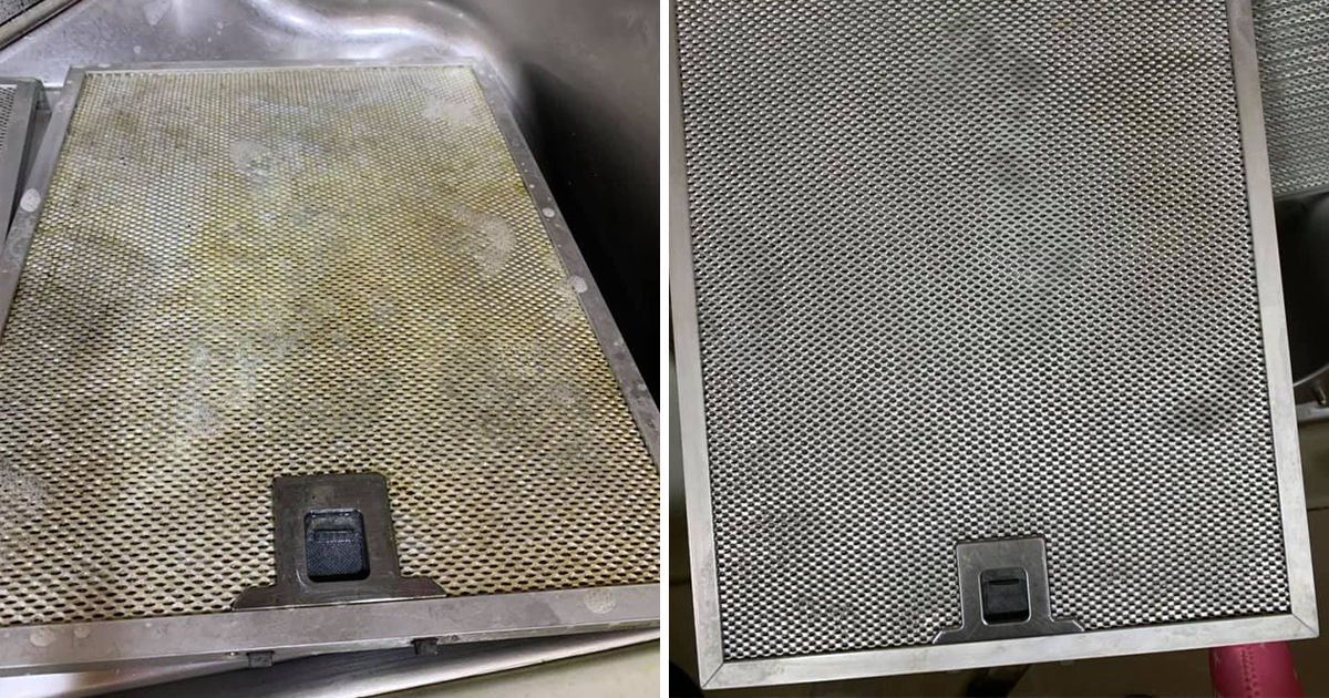 ▼原po表示,她在好市多買了一款清潔劑,回家後拿來清洗油煙網、地板磁磚等等,效果令她非常滿意。從對比照可以看到,原本沾滿黃垢的油煙網、佈滿灰塵髒汙的止滑地板,還有充滿燒焦痕跡的瓦斯爐,用這款清潔劑清洗後都變得乾乾淨淨。原po說:「這瓶超級好用,噴上去過5到10分鐘後沖熱水,一沖就乾淨了。」