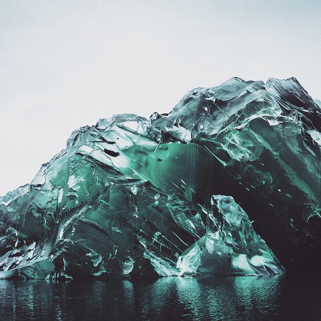 ▼跟平時看到的白色冰山不同,水面下的部分是由海水凝固而成的,顏色晶瑩剔透,就像一塊珍貴的藍寶石。
