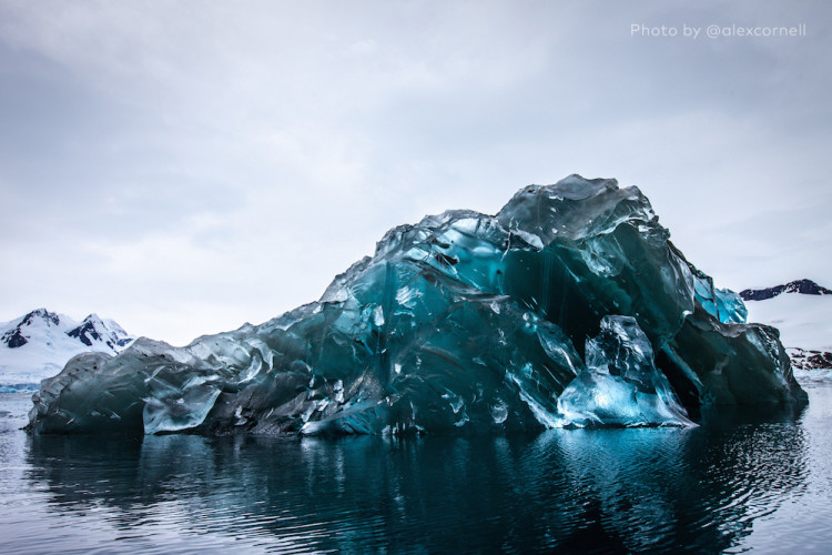 翻轉過來的冰山是一團凝固的藍色,看起來非常美。快去Alex Cornell的網頁,看看他南極旅途中拍到的更多奇景吧。