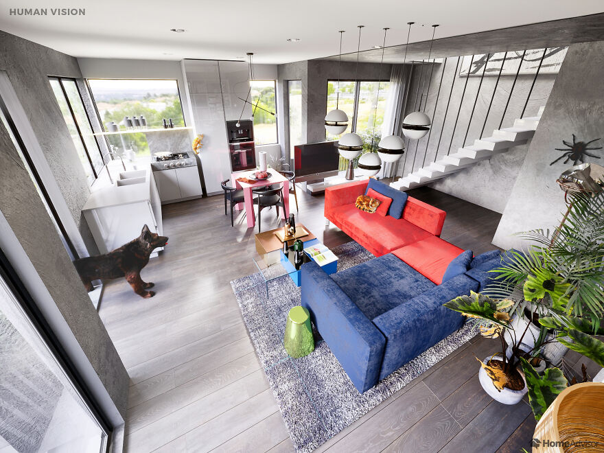 2021年01月26日你好奇過寵物眼裡的世界是什麼樣子的嗎? Home Advisor在進行了很多研究後,創建了一個數字化房間,之後讓7種寵物進入到房間中,並根據牠們眼中所見,繪製出了不同動物眼中看到的場景。