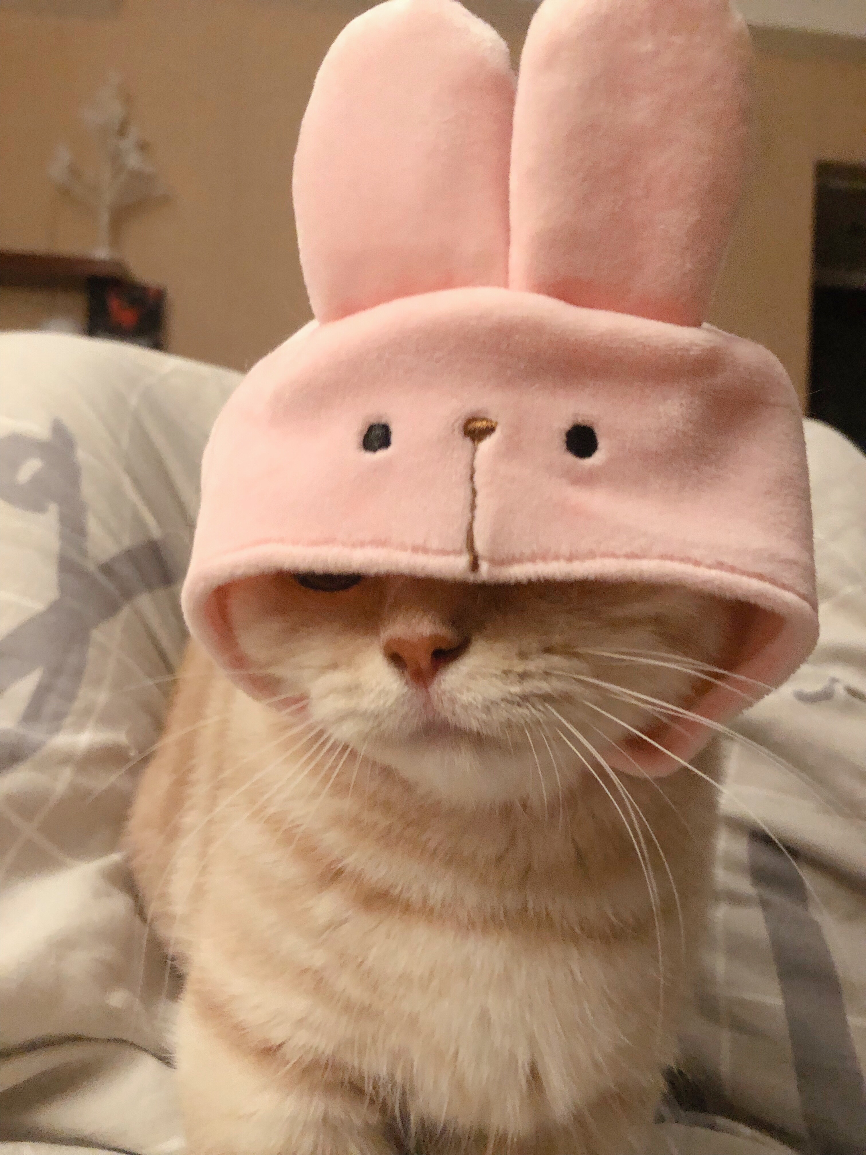 ▼牠能夠完美駕馭所有可愛風格的道具,今天牠是一隻粉紅色的小兔子。