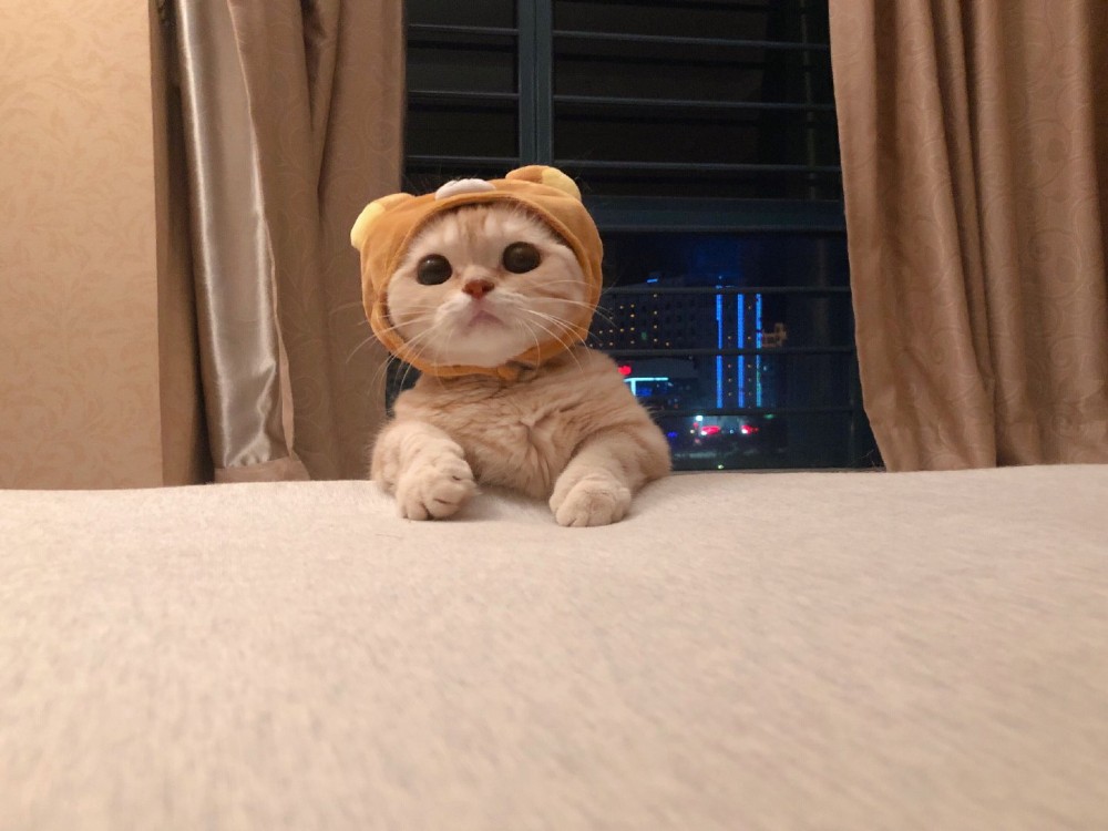 ▼這隻小萌貓戴上拉拉熊風格的帽子太合適了。