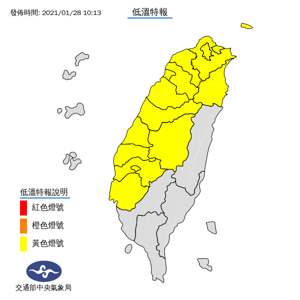 2021年01月28日又要降溫了!中央氣象局表示,今(28日)晚至30日清晨受強烈大陸冷氣團影響,北部及東北部天氣寒冷,其他地區早晚亦偏冷,可能會有10度以下氣溫發。今晚至明天(29日)上午局部地區有可能出現10度以下的氣溫。這波冷空氣最冷的時間點提前到今晚至明天清晨。