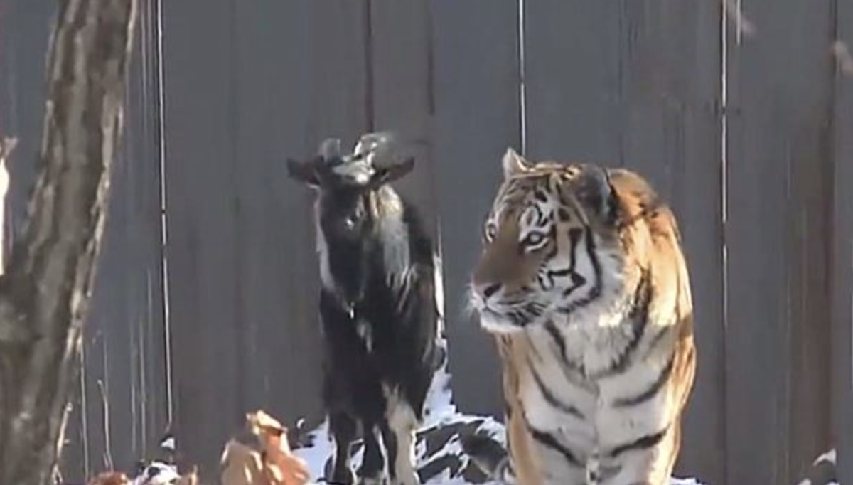 2021年01月29日生活在動物園中的動物養尊處優、不缺吃喝,但會慢慢失去原有的野性。最近巴基斯坦的一座野生動物園中發生了一件趣事。園方為了給園裡的一隻老虎慶生,特別將一隻活山羊趕進老虎的生活區,希望老虎能飽餐一頓。隔天管理員去巡視,發現山羊不僅活得很好,還跟老虎成為了好朋友。