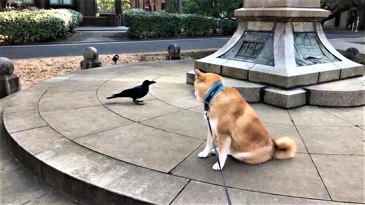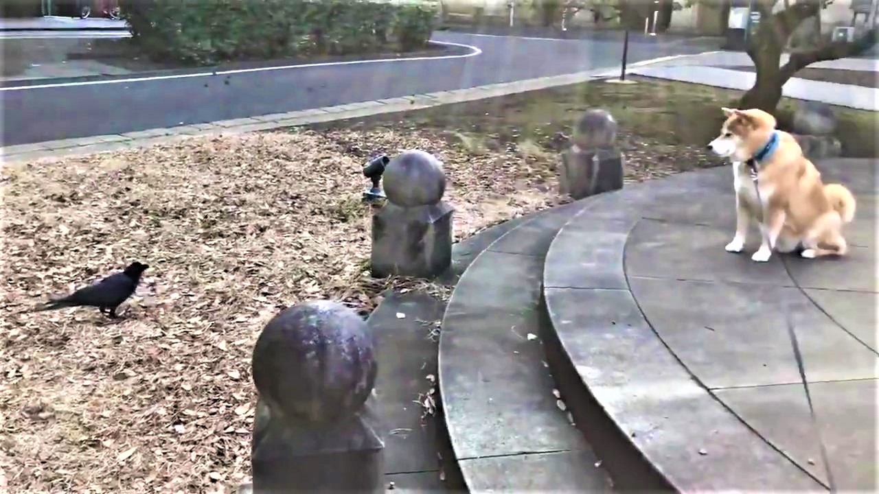 2021年02月04日很多狗狗看到路邊的小鳥會好奇追上去,讓狗狗和鳥兒和平相處非常難~日本有一隻叫阿丸(まるMaru)的柴柴,有一天主人帶牠出門散步,牠在公園邂逅一隻烏鴉,雙方四目相對,卻沒有干擾。這平靜有愛的瞬間讓人感覺超治癒。