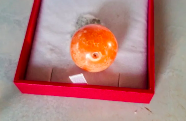 2021年02月07日日前泰國洛坤府(Nagara Sri Dharmaraja)37歲漁民Hatchai Niyomdecha和家人到海邊撿貝殼時,發現了一個被衝到岸邊的廢浮標,上面附有一些貝類,其中就有3個海螺。他在一個海螺裡找到了一顆比硬幣還要大的橘色珍珠,重約7.68克~