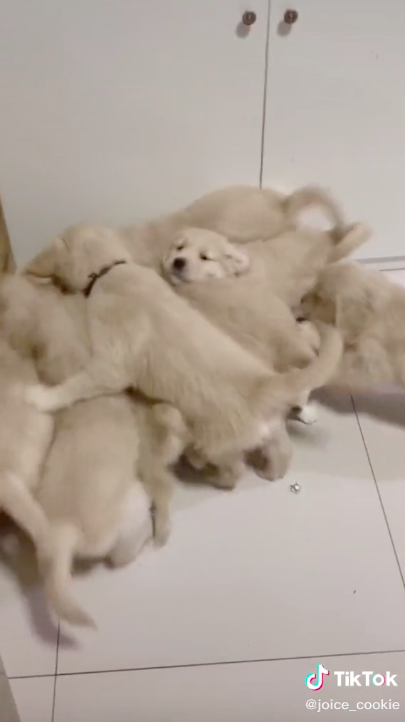 網友們看到照片後紛紛表示:「朕乏了QQ」、「狗寶寶真的很有活力」、「愛與熱情太多,招架不住」、「是黃金浪潮」、「奴才還不護駕」、「喵:哪來這群小屁汪」。照顧小孩太辛苦,就連貓咪都招架不住啊~