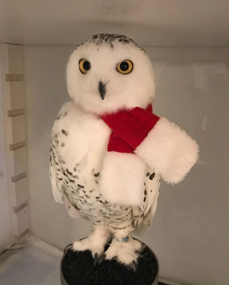 ▼Haku其實是雪鴞,這是很特別的貓頭鷹品種,牠們晝出夜伏,作息跟人類差不多。雌雪鴞的羽毛上黑色斑點比較多,而且體型也比雄雪鴞大一些。Haku是一個活潑可愛的男生,平時很喜歡跟主人玩遊戲。