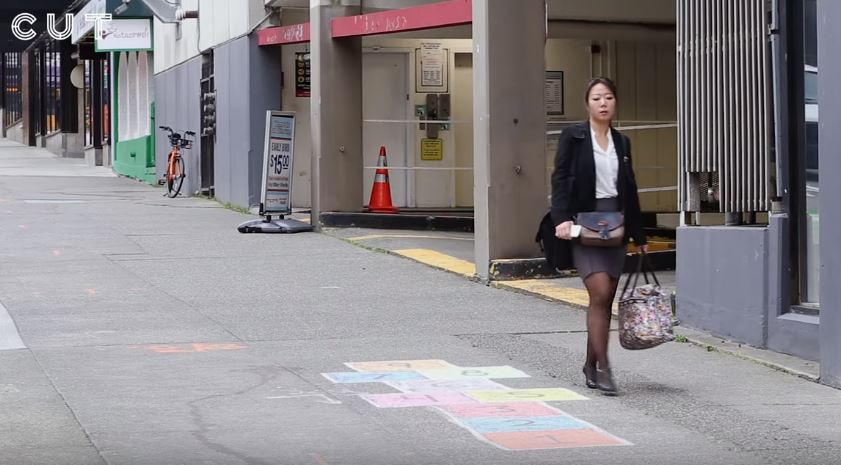 ▼這個實驗耗時10個小時,共有1,053位路人從這段路經過,其中128人開心玩跳房子遊戲。