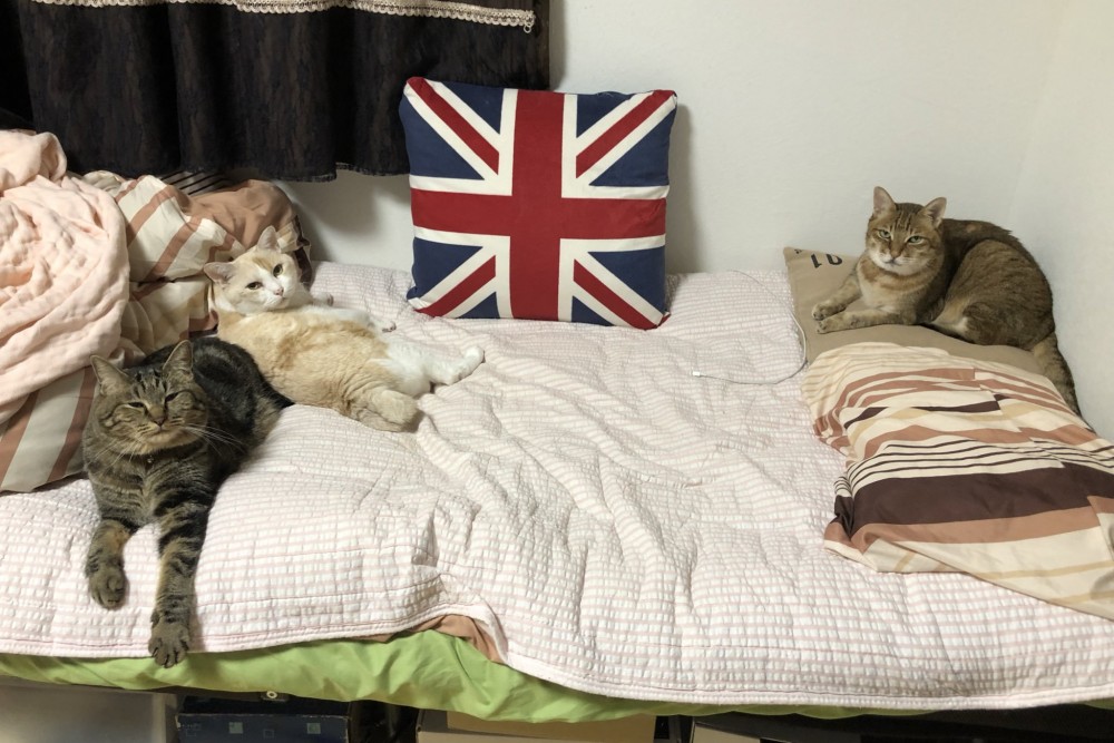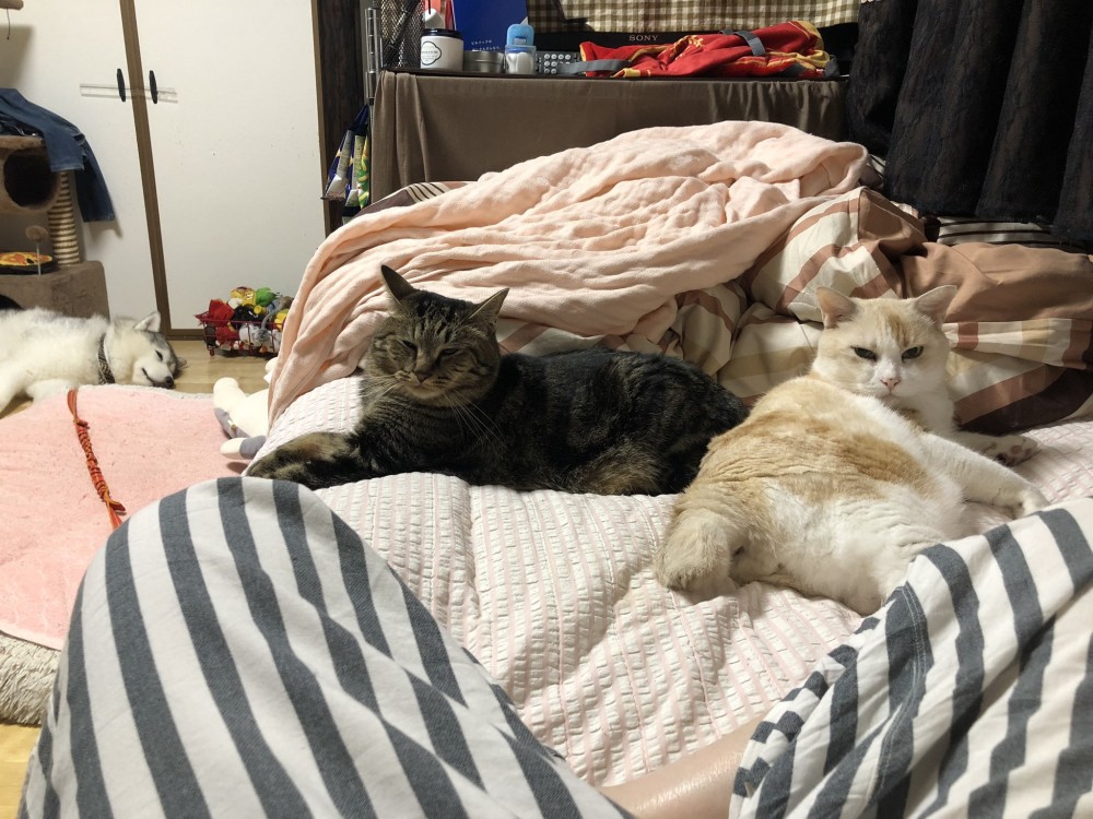 ▼最後還是擠在一起睡比較溫暖啦~(奴才就睡最角落吧~笑)