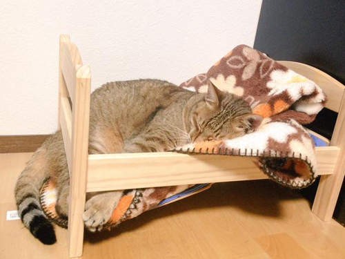 雖然浪費了新床,但是想想可以窩在一起睡搞搞,感受到最大的幸福感就不用太計較了啦~比起小床,貓皇還是喜歡「大龍床」吧?