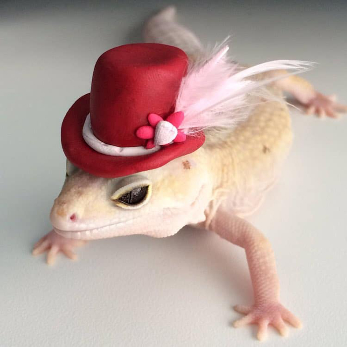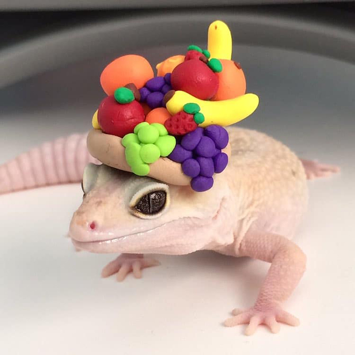 ▼Emma 另外還養了壁虎「Stimpy」,她也會用彩色黏土為 Stimpy 做出可愛頭飾,讓 Stimpy 也可以當名模!