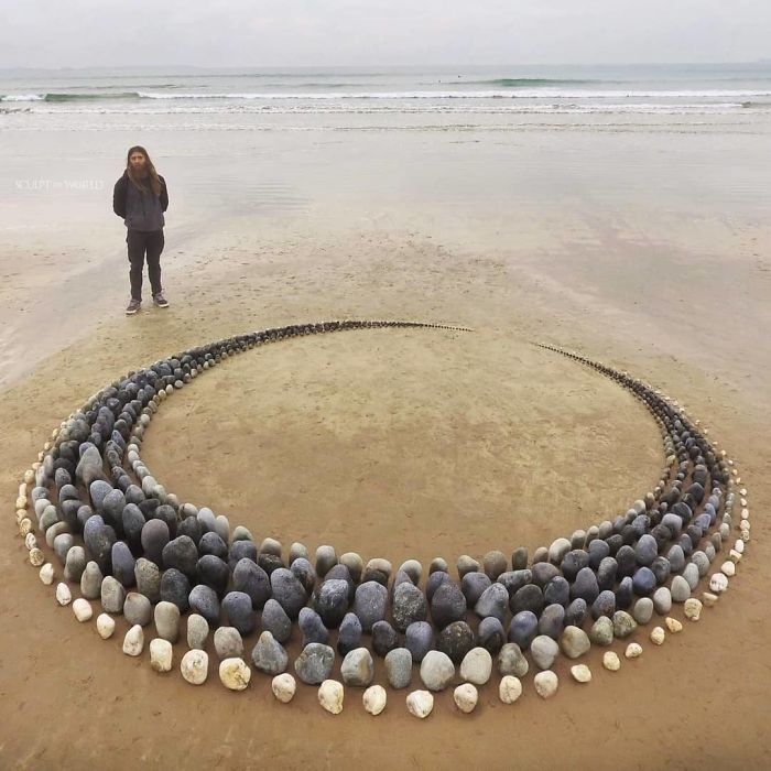 2021年02月10日住在英國彭布羅克郡(Pembrokeshire)的Jon Foreman是一位大地藝術家。他讀大學期間了解到這種在自然界創作的藝術形式,深深為之著迷。他撿來大大小小的石頭,在沙灘上擺成一圈,最後完成的作品竟然非常療癒。