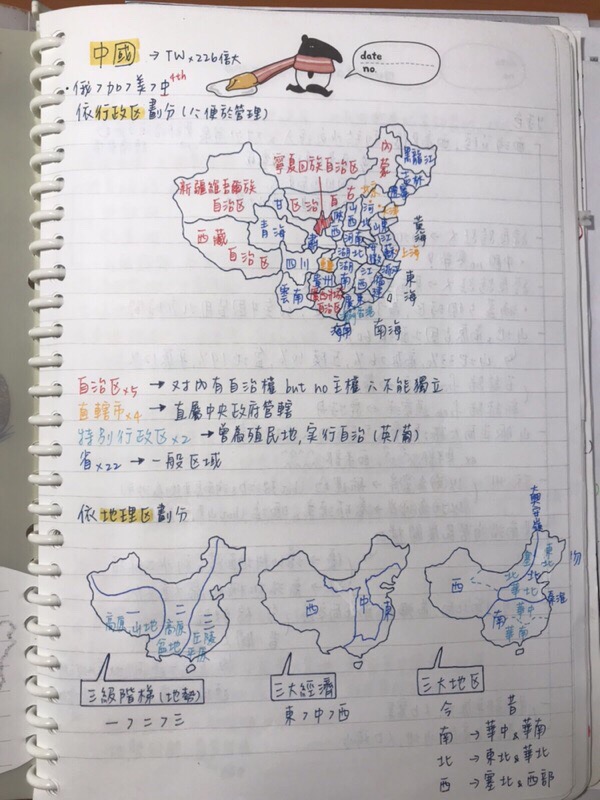 ▼不得不說北一女的學生筆記真的好狂,文字超詳細之外,連地圖都能畫出來,看起來比市面上的參考書還要值得買啊!