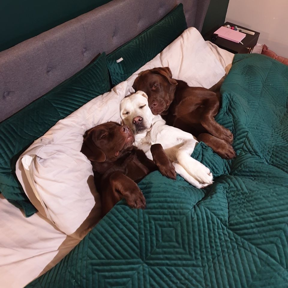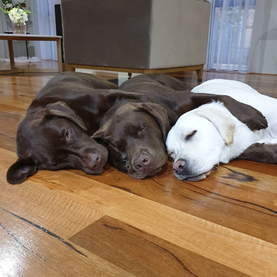 2021年02月11日Willow、George和Henry是三隻可愛的拉布拉多,牠們一起生活在澳洲的一個家庭中。三隻狗狗的主人是一對充滿愛心的夫妻,陪伴牠們一起長大。如今5歲的Willow、3歲的George和2歲的Henry還像小時候一樣一起睡覺覺,看到牠們一起睡著的畫面主人都被感動了。