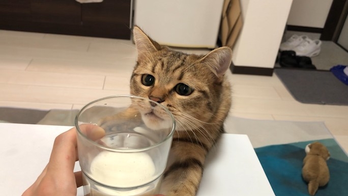 2021年02月18日小貓咪不能這麼貪吃喔~日本推主@minira_diary家有一隻非常可愛的虎斑貓,牠很貪吃,每次看到主人吃東西,都會跑過去討食。那天牠看到主人桌子上有一杯牛奶,竟然沖上前想要整杯端走。主人眼疾手快將牛奶搶過來,貓咪撒嬌賣萌的表現讓人心都融化了。