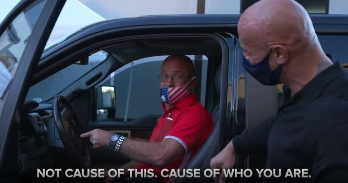 ▼巨石強森一直記得布魯諾的恩情,決定回報對方。他給布魯諾買了一輛新車,並說:「你做的一切對我來說很有意義,因為改變了我的一生,我不只愛你也很感謝你,你幫我買人生第一輛車,我現在總算有機會告訴你,這是你的新車!」布魯諾看到新車後非常感動,不停問:「你是認真的嗎?」還說:「我愛你兄弟,不是因為這台車,而是因為是你!」