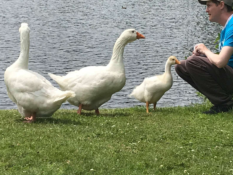 ▼Doug說:「我很喜歡動物,動物對我也很友善。我跟那些戒心很強的兇巴巴的貓咪也能成為朋友。」提起跟鵝群熟悉的過程,Doug說:「剛開始我只是試著不去嚇到牠們,不給牠們們理由害怕我。後來牠們看到我都很淡定,慢慢地我們就成為了朋友。」