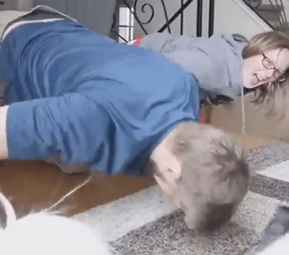 ▼TikTok用戶@mgfletch分享了一段挑戰影片。只見她跟男友先用手肘、膝蓋撐地,然後迅速將雙手放到背後。她輕輕鬆鬆完成挑戰,男友卻一下子失去平衡,頭部狠狠撞在了地上。@mgfletch看到男友挑戰失敗忍不住哈哈大笑,並說:「顯然,男人的重心不同,他們沒辦法做到!」