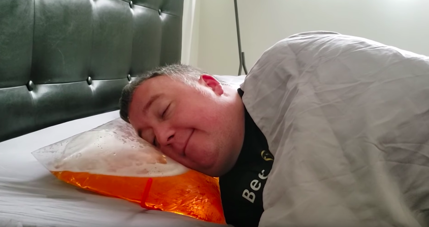 睡夢中也想喝!天才男自製「啤酒枕頭」 醒來隨時都能嚐一口~