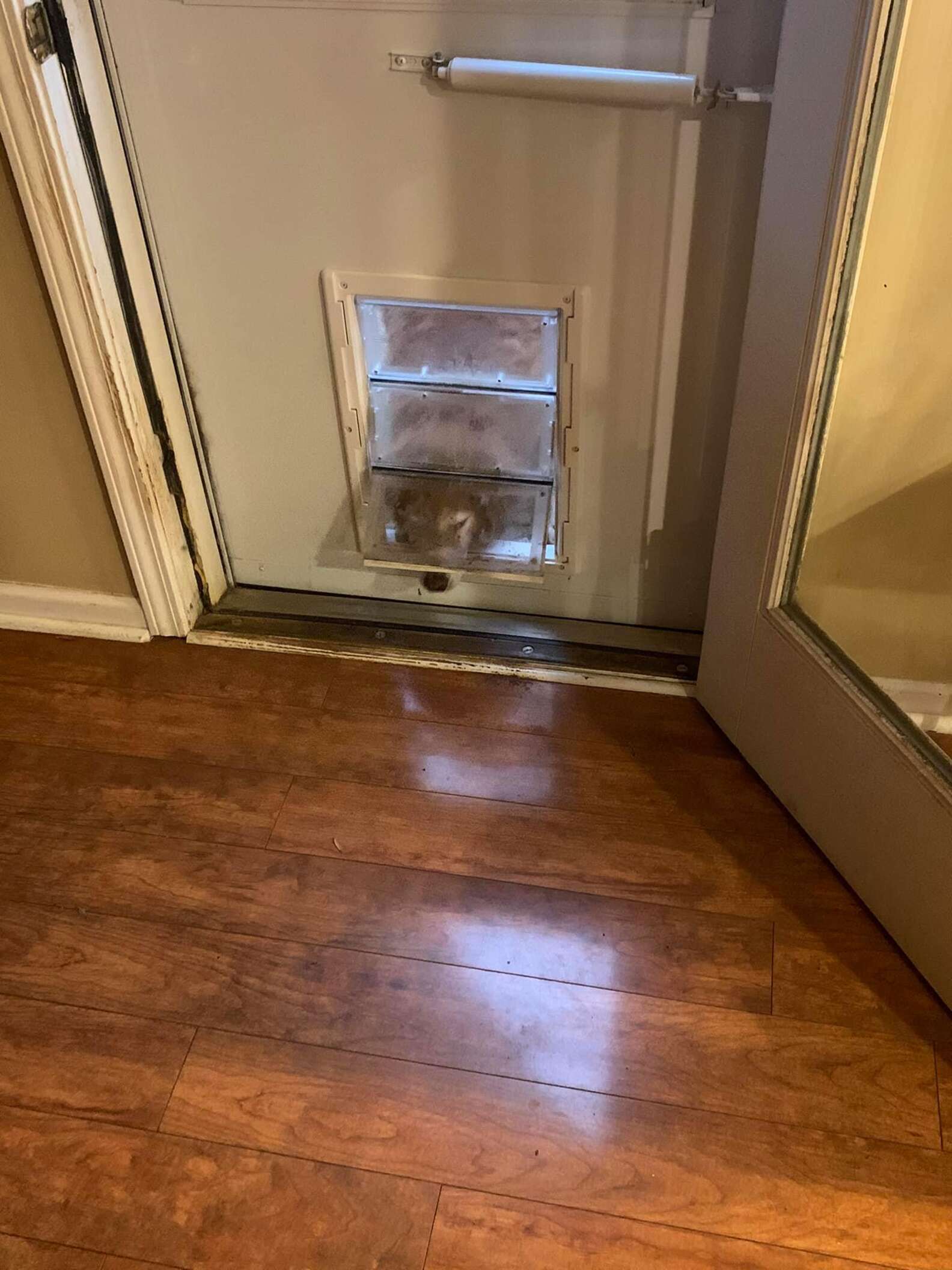 ▼Dakota的計劃非常完美,但牠沒想到狗門是透明的,牠坐在門外的畫面都被Cherry看到了。Cherry說:「剛開始我是相信牠有去上廁所的,但又覺得怎麽那麽快就回來,所以去看了一下,這才發現牠有多精明。」Dakota可愛又聰明的模樣讓Cherry笑翻。