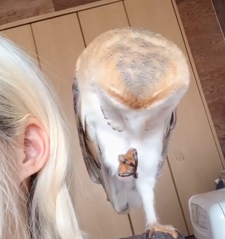 用腳腳玩主人頭髮! 呆萌貓頭鷹鬆爪爪「表情超疑惑」:啊咧~去哪了