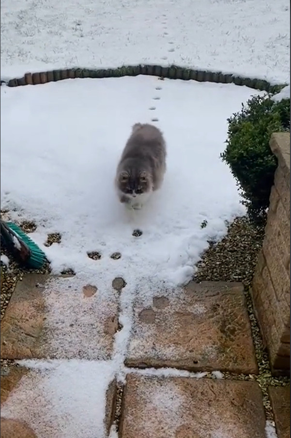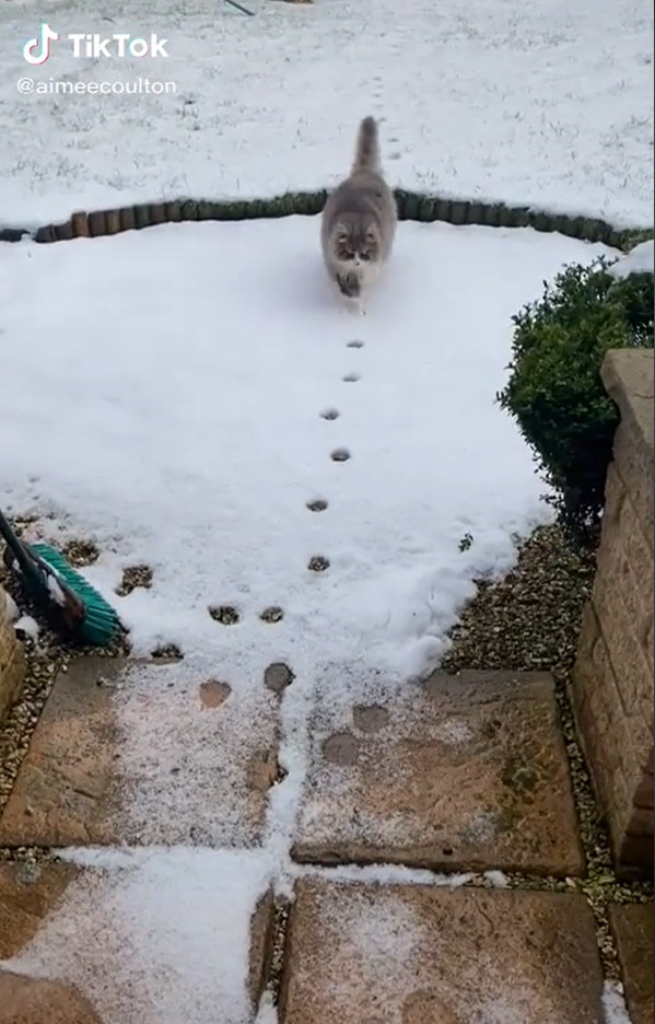 2021年02月21日英國有一隻非常可愛的貓咪,牠非常喜歡下雪,每到下雪天都會獨自跑到外面玩。一場大雪過後,貓咪外出散步,在雪地裡留下一串小腳印。沒想到牠回來時竟沿著原本走出去的痕跡,讓大家看到了什麼是真正的「貓步」。主人將這一幕拍下來po到網路上,很快引發網友們的關注。